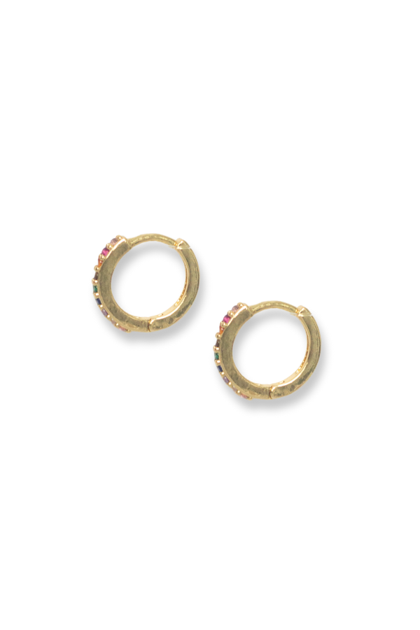 The Stella Huggie Earrings are dainty gold huggies with a vibrant twist. Featuring sparkling multicolored gemstones that catch the light beautifully. These earrings are the perfect pop of color for everyday wear, offering just enough shimmer to stand out while staying sleek and subtle.