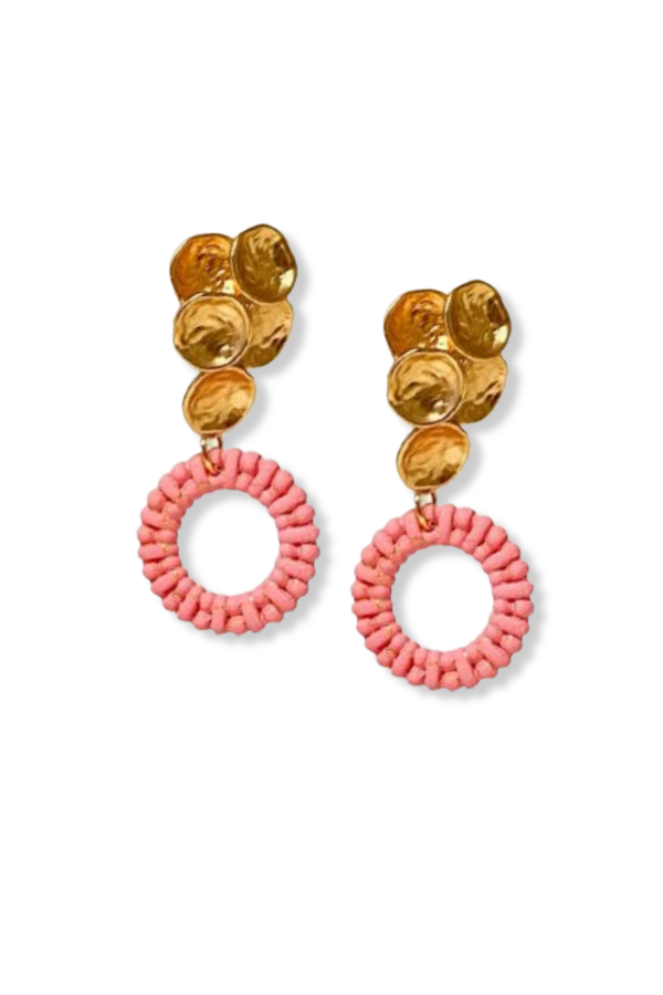 Get ready to make a statement with our Lydia Earrings. These quirky and colorful earrings feature 18k gold plated studs and hypoallergenic materials for added comfort. With clay rattan drop circles, these earrings are sure to add a touch of fun to any outfit. (Slight variations in color may occur.)