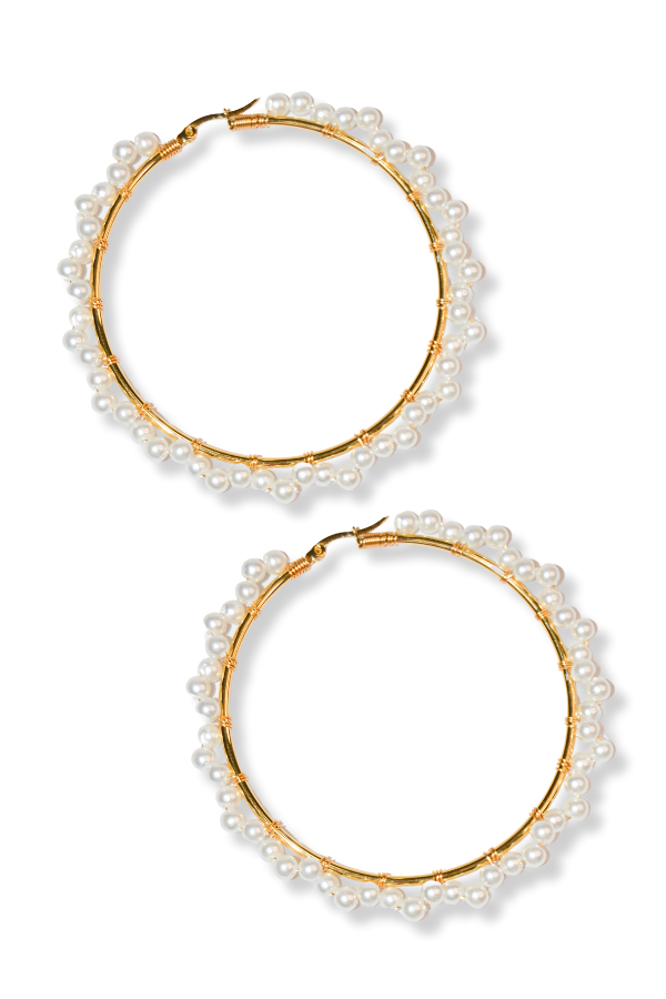 Discover the Teagan Hoop Earrings, featuring a 2.5" diameter design wrapped in luxurious freshwater pearls. These gold-plated hoops offer a perfect balance of elegance and modern style, making them ideal for both casual and formal occasions. With their unique design and high-quality creation, the Teagan Earrings are a versatile addition to any jewelry collection. Elevate your look today with these statement earrings!