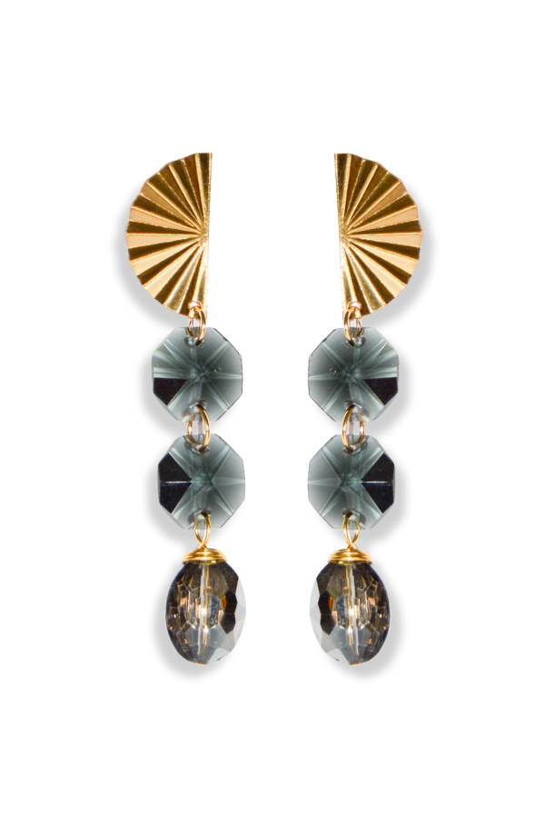 Make a statement with the Vivian Earrings! These unique earrings feature a gold-plated stud post, two black crystal drops, and a sparkling silver mirrored oval stone at the bottom for extra glam. Who says jewelry can't be fun and fashionable? Get ready to shine!