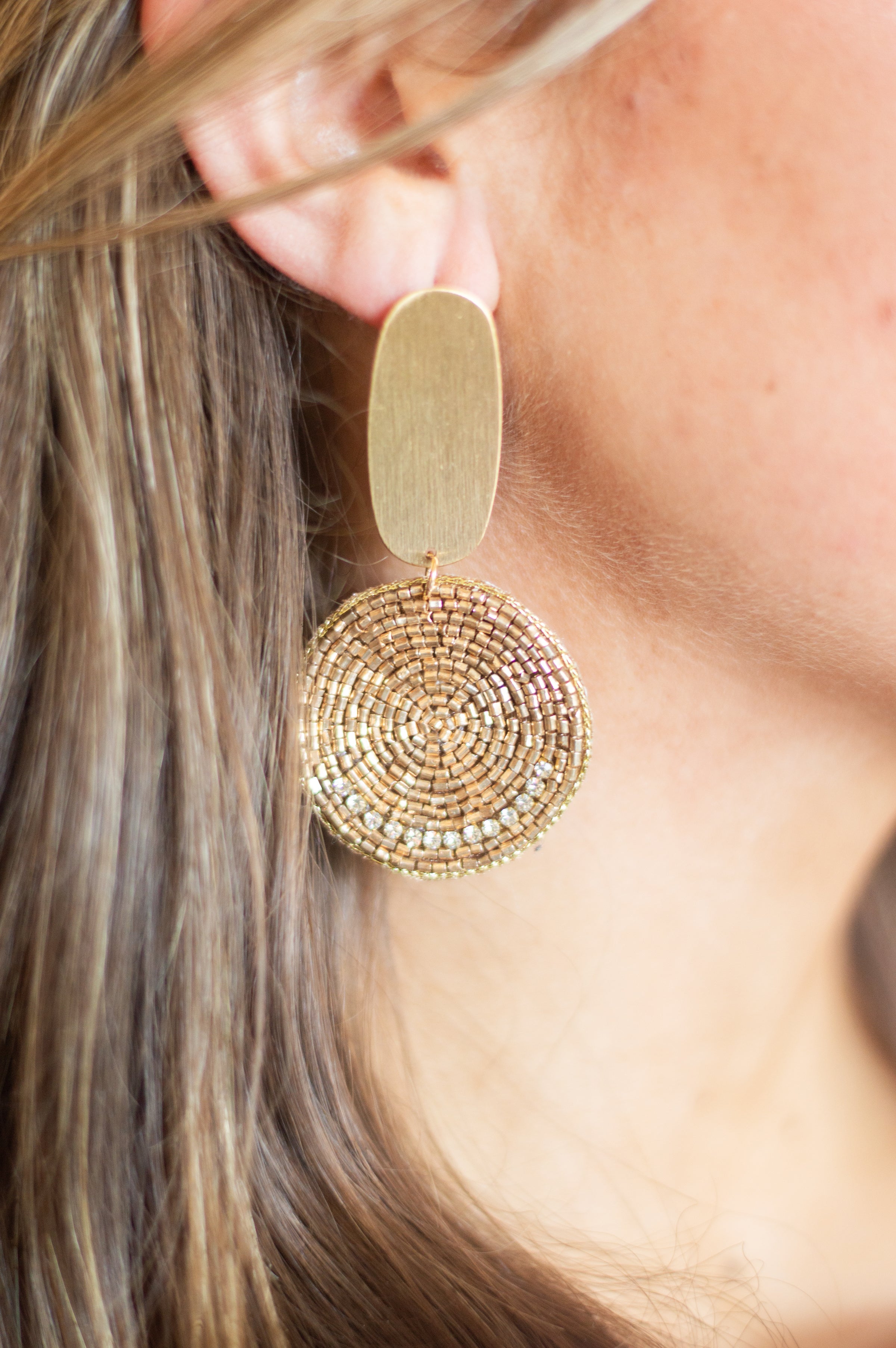 These gold-plated oval stud earrings feature a delicate beaded circle accented with just the right touch of rhinestone sparkle. Their lightweight design makes them comfortable for all-night wear—perfect for dressing up your look for holiday parties, festive gatherings, or a night out.