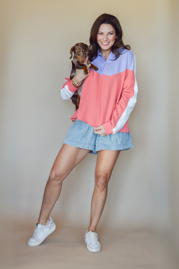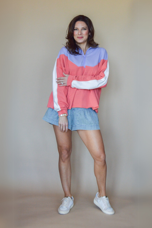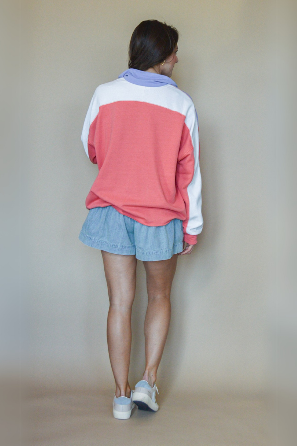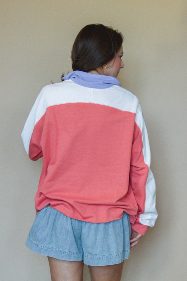 Elevate your casual style with this long sleeve color block terry knit sweatshirt. Featuring a bold color block design, this sweatshirt combines style and comfort in the most effortless way. The soft terry knit fabric provides a cozy, relaxed fit, perfect for lounging or casual outings. A standout feature is the sleek collar, adding a touch of sophistication and structure to the classic sweatshirt silhouette. Whether paired with jeans, leggings, or skirts, this versatile piece is ideal for adding a pop of color and modern flair to your everyday look.