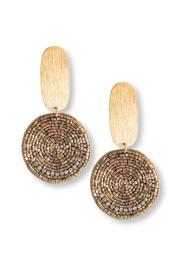 These gold-plated oval stud earrings feature a delicate beaded circle accented with just the right touch of rhinestone sparkle. Their lightweight design makes them comfortable for all-night wear—perfect for dressing up your look for holiday parties, festive gatherings, or a night out.