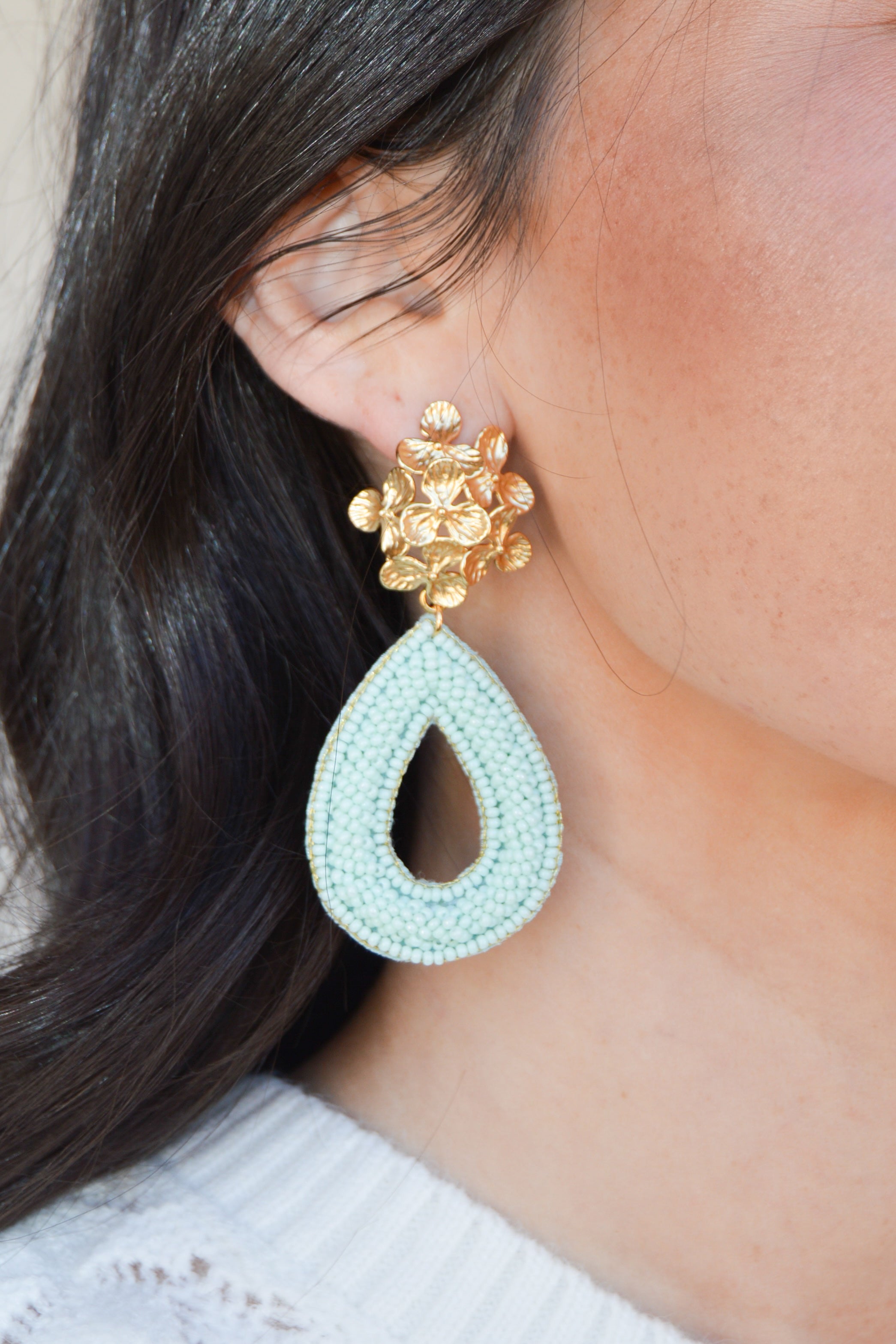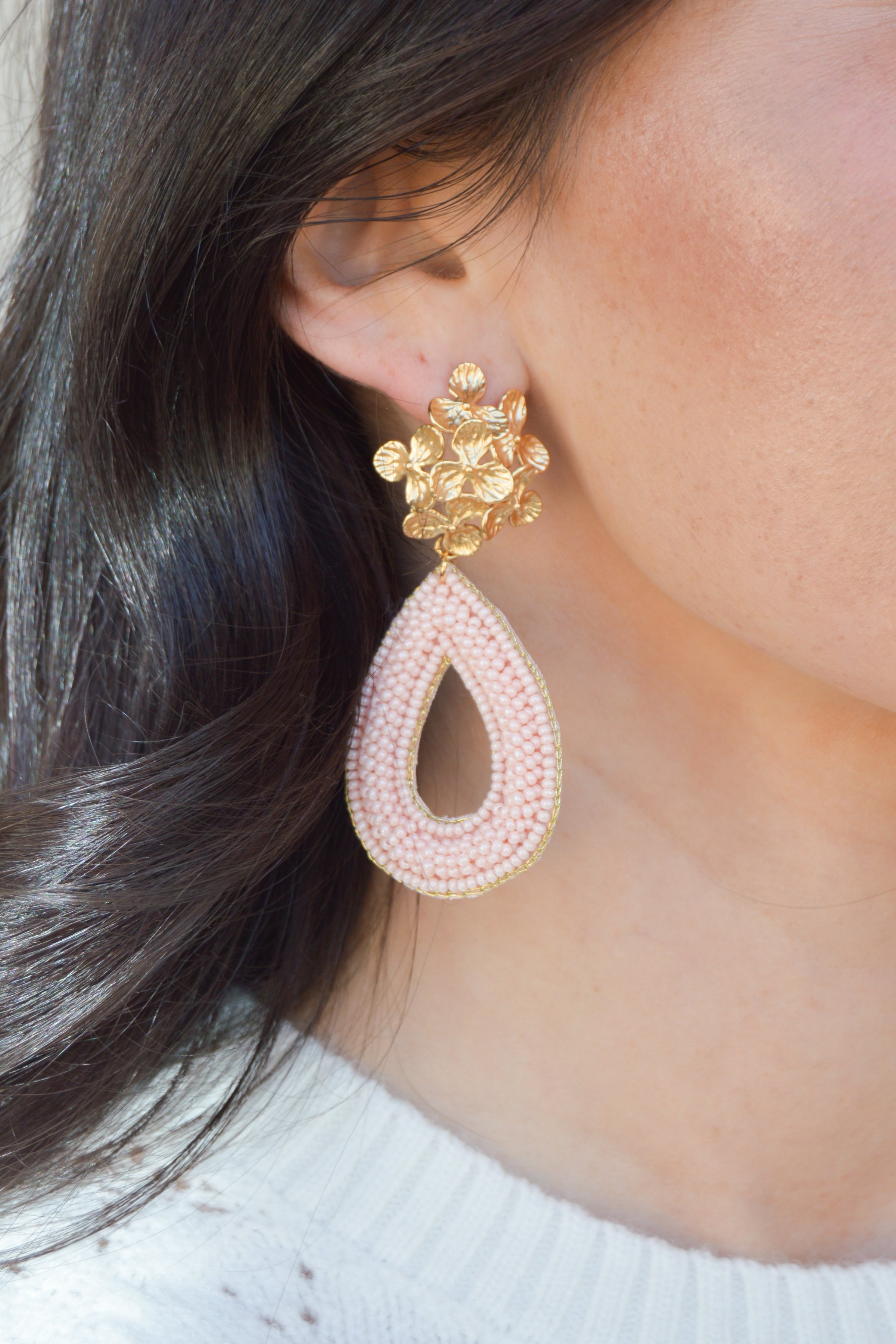 Elevate your elegance with these stunning earrings, featuring our signature matte gold floral stud paired with a lightweight beaded teardrop. The intricate floral design offers a timeless, sophisticated touch, while the vibrant beads in soft hues add a modern, playful twist. Perfect for any occasion, these earrings effortlessly blend classic beauty with contemporary charm. Crafted for comfort, their lightweight design ensures all-day wear without compromising style.