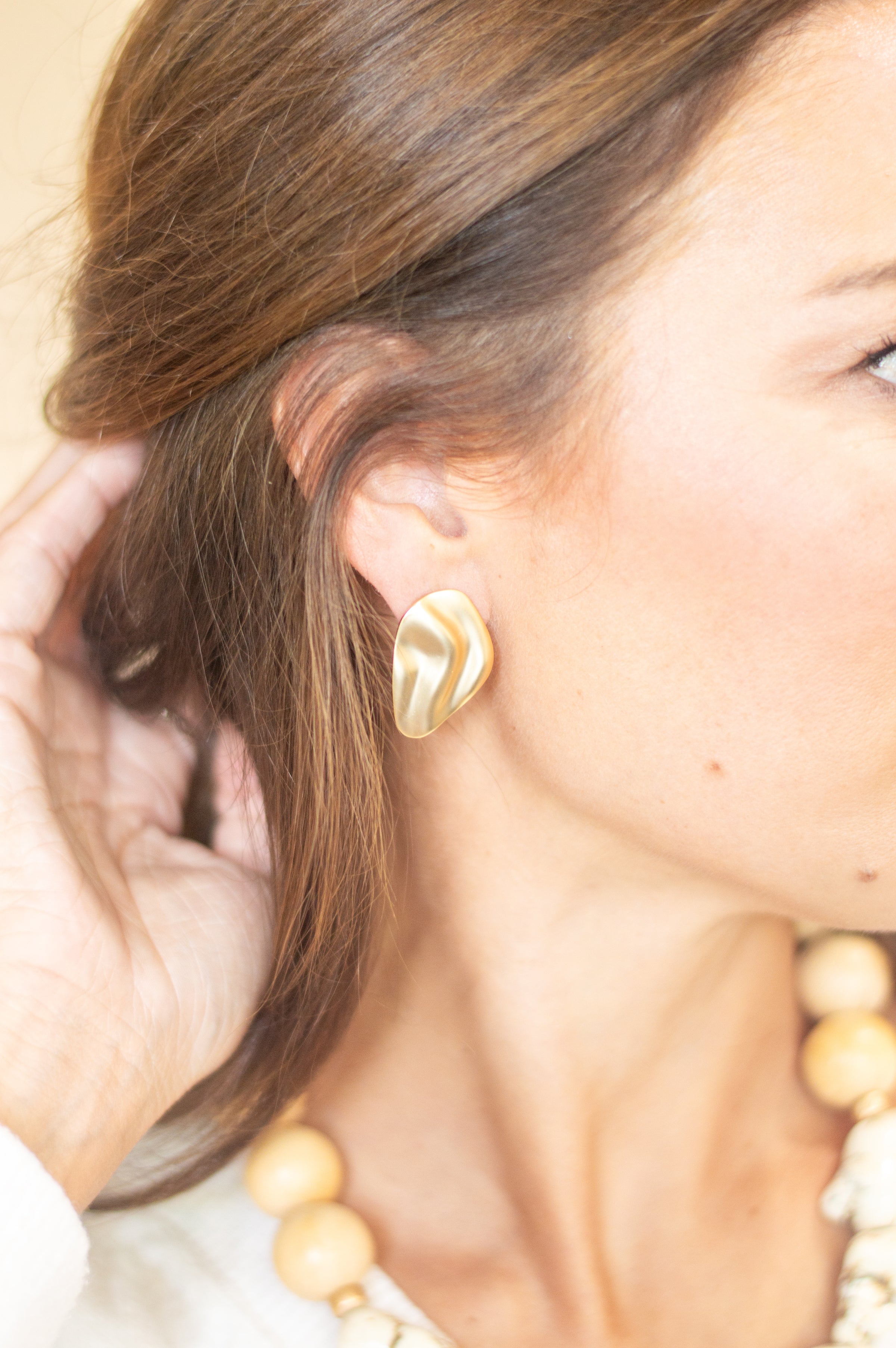 This earring features our signature matte 18K gold plating that adds a luxurious, modern touch to your look. Made with hypoallergenic materials, these earrings are ideal for sensitive ears, ensuring both style and comfort. Plus, they're waterproof, so you can confidently wear them in any weather, whether it's a rainy day or a day by the pool.