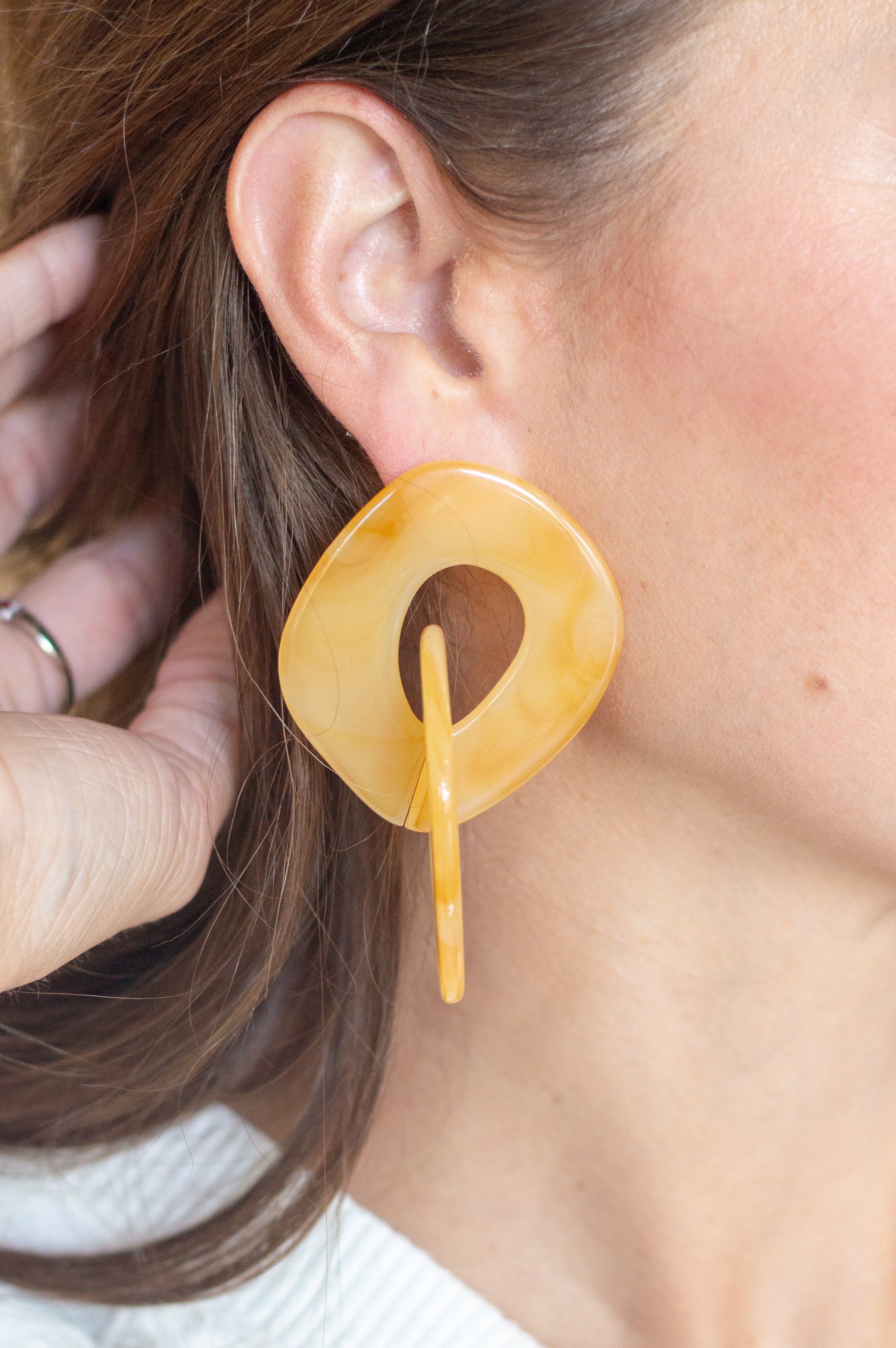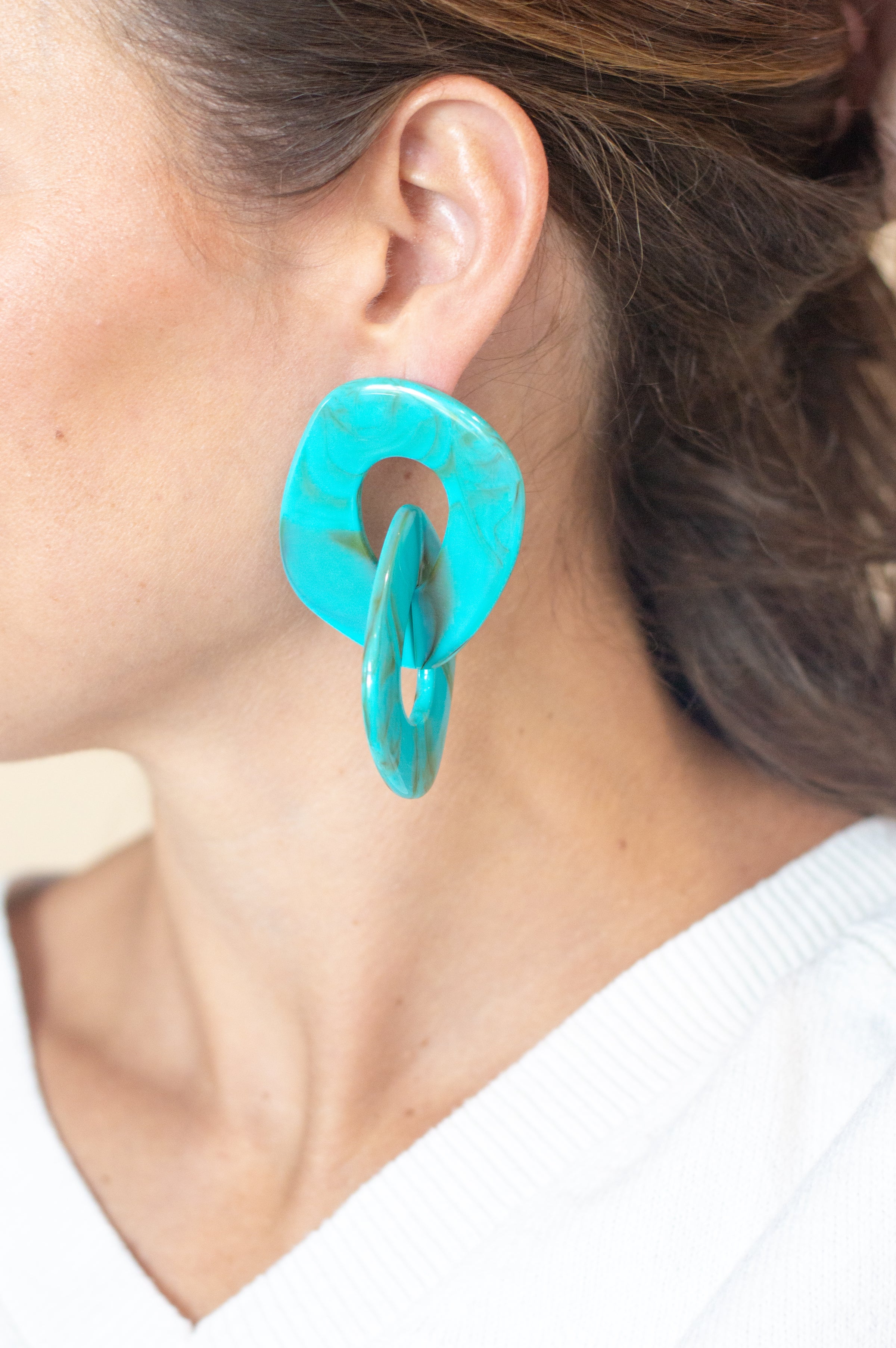 Bold color meets effortless comfort in Sloane Earrings. Crafted from ultra-lightweight acetate in a vibrant mix of navy, crimson, yellow, cream, and turquoise, these statement-makers bring instant flair without the weight. Whether you're turning heads on a night out or adding a pop to your everyday look, they're your go-to for all-day, all-night wear.