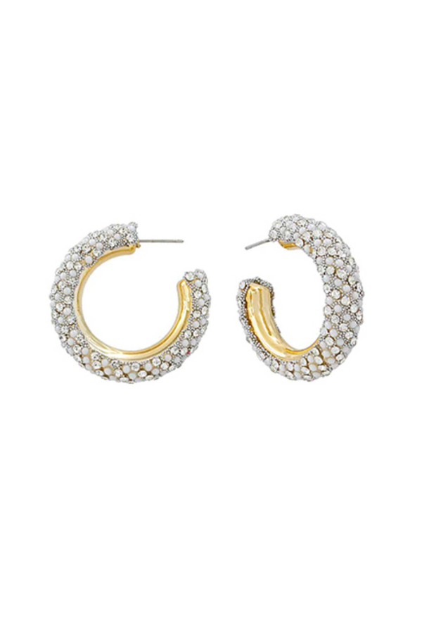 White Beaded/Rhinestone Hoop Earrings