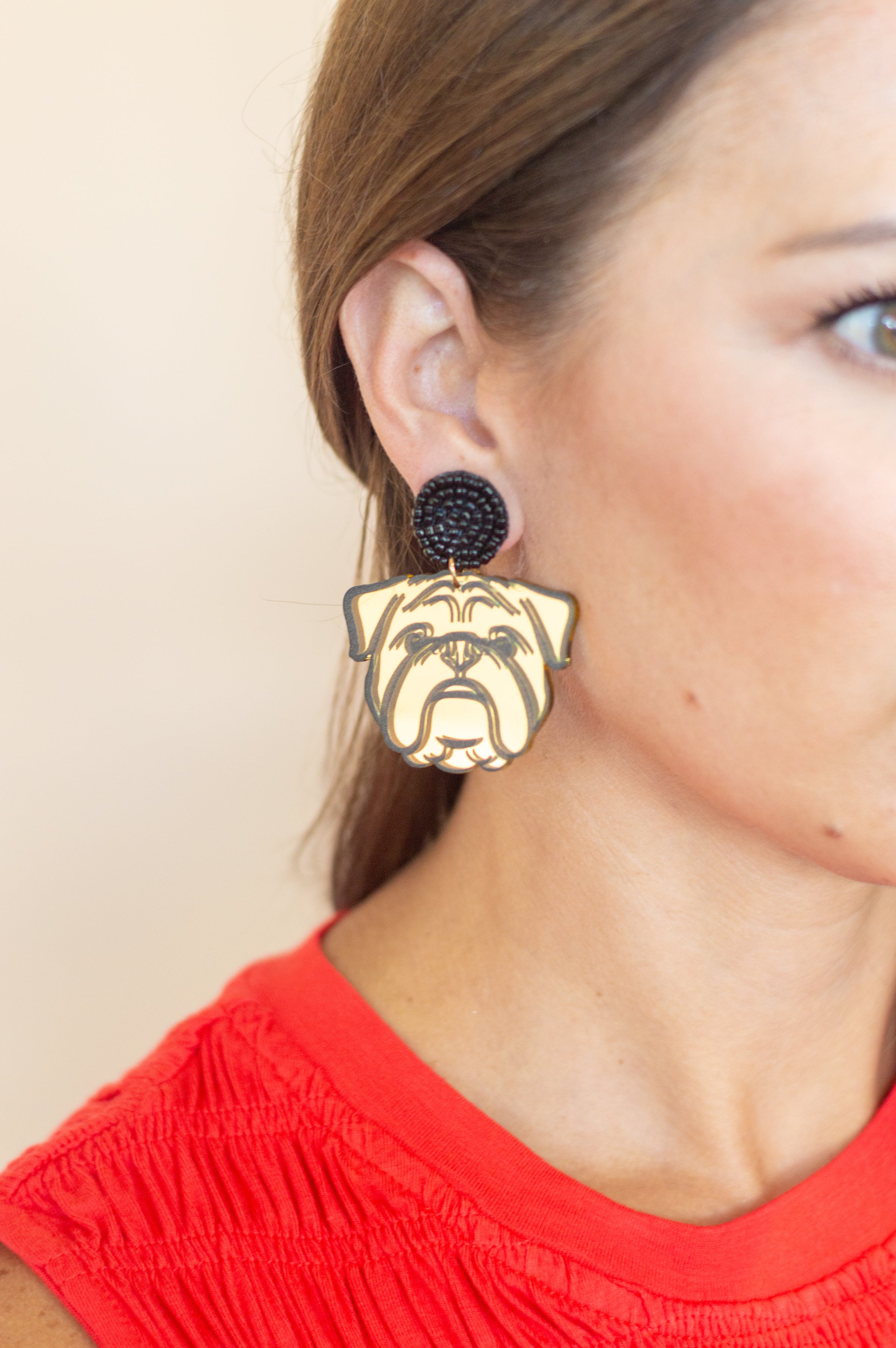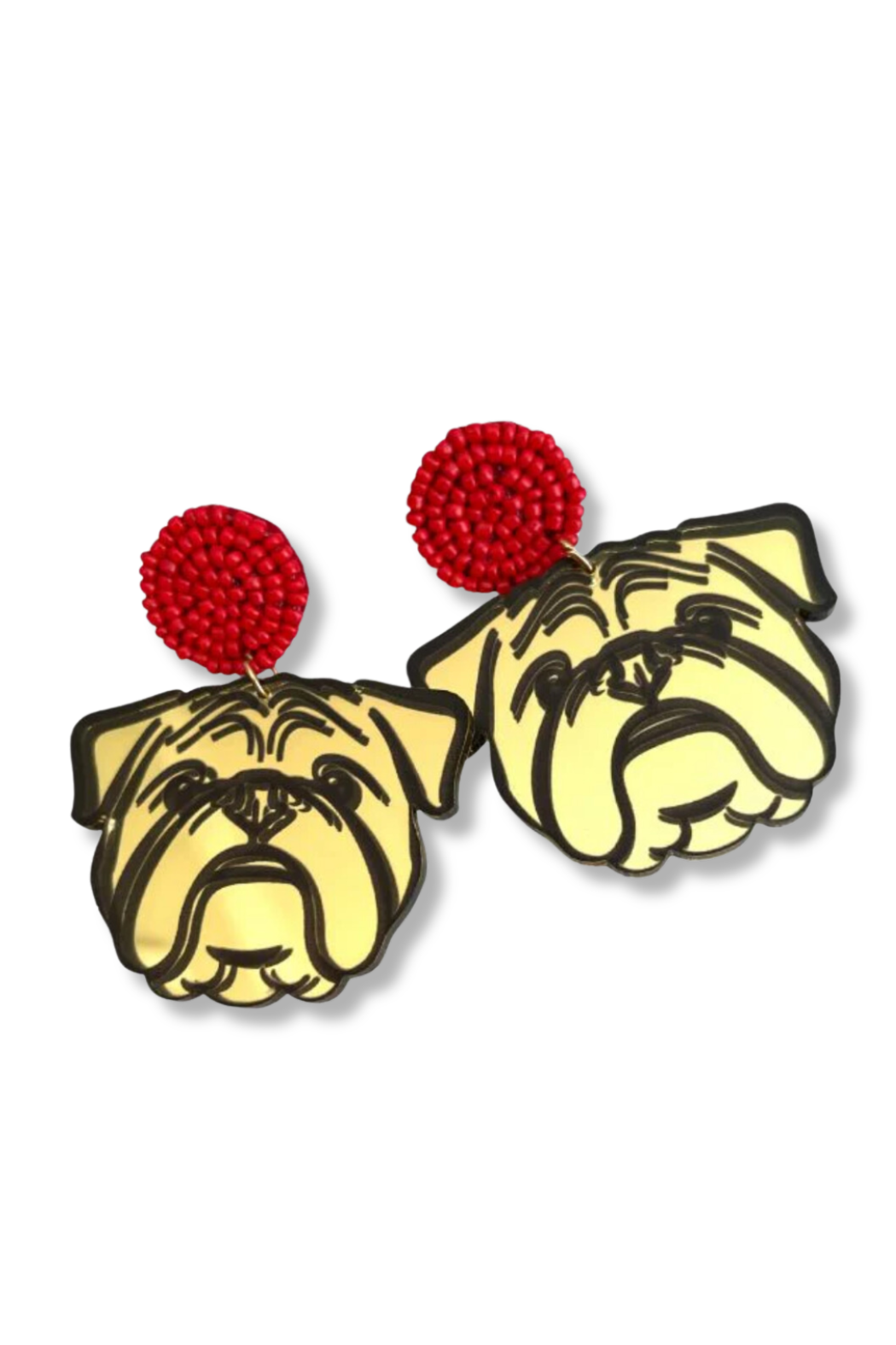 Show your bulldog spirit with these gold mirrored Bulldog Earrings. They make the best team spirit statement while still being very very lightweight!