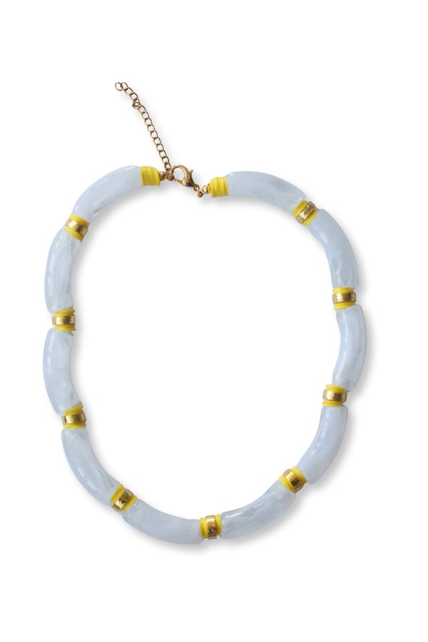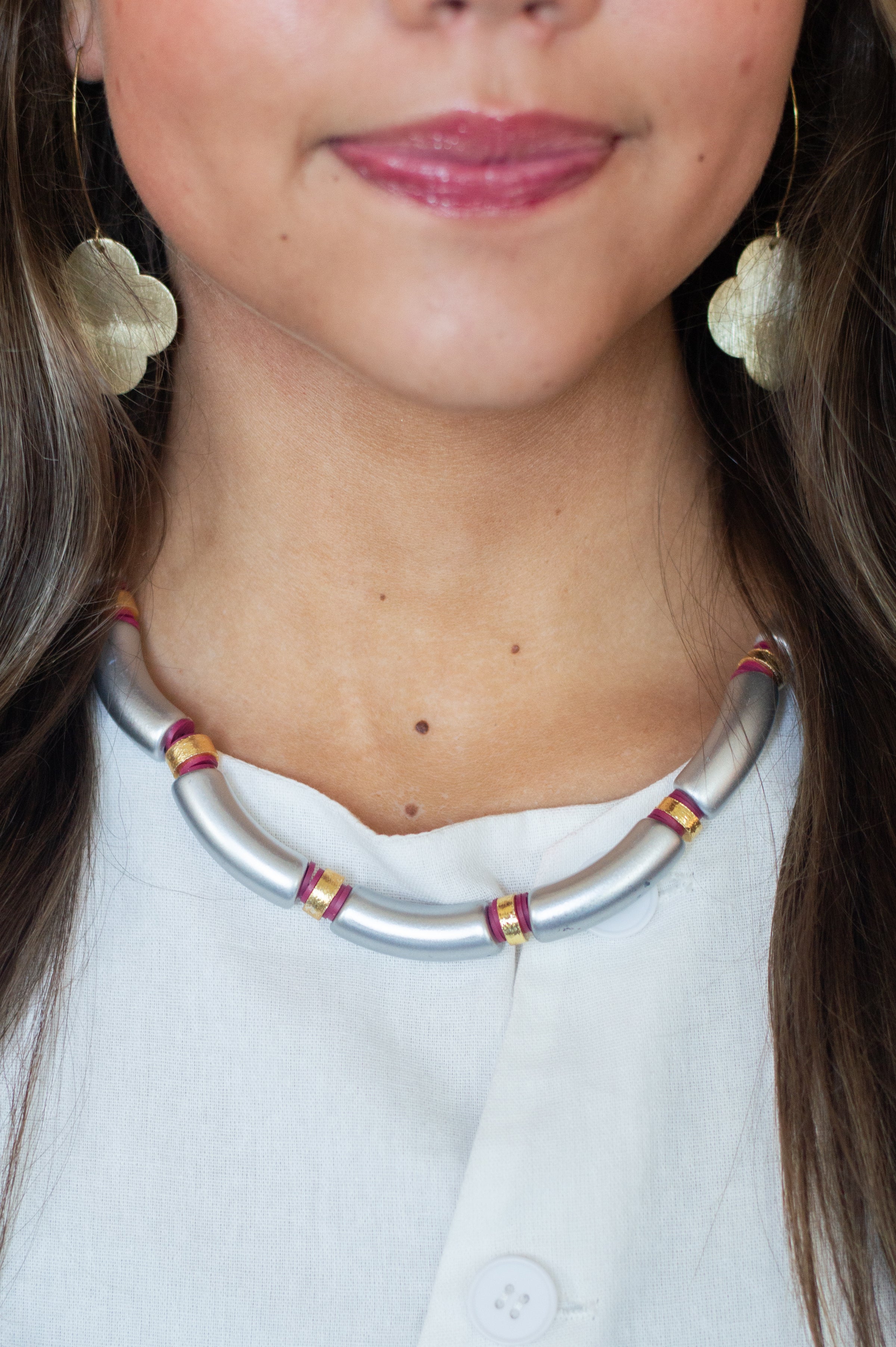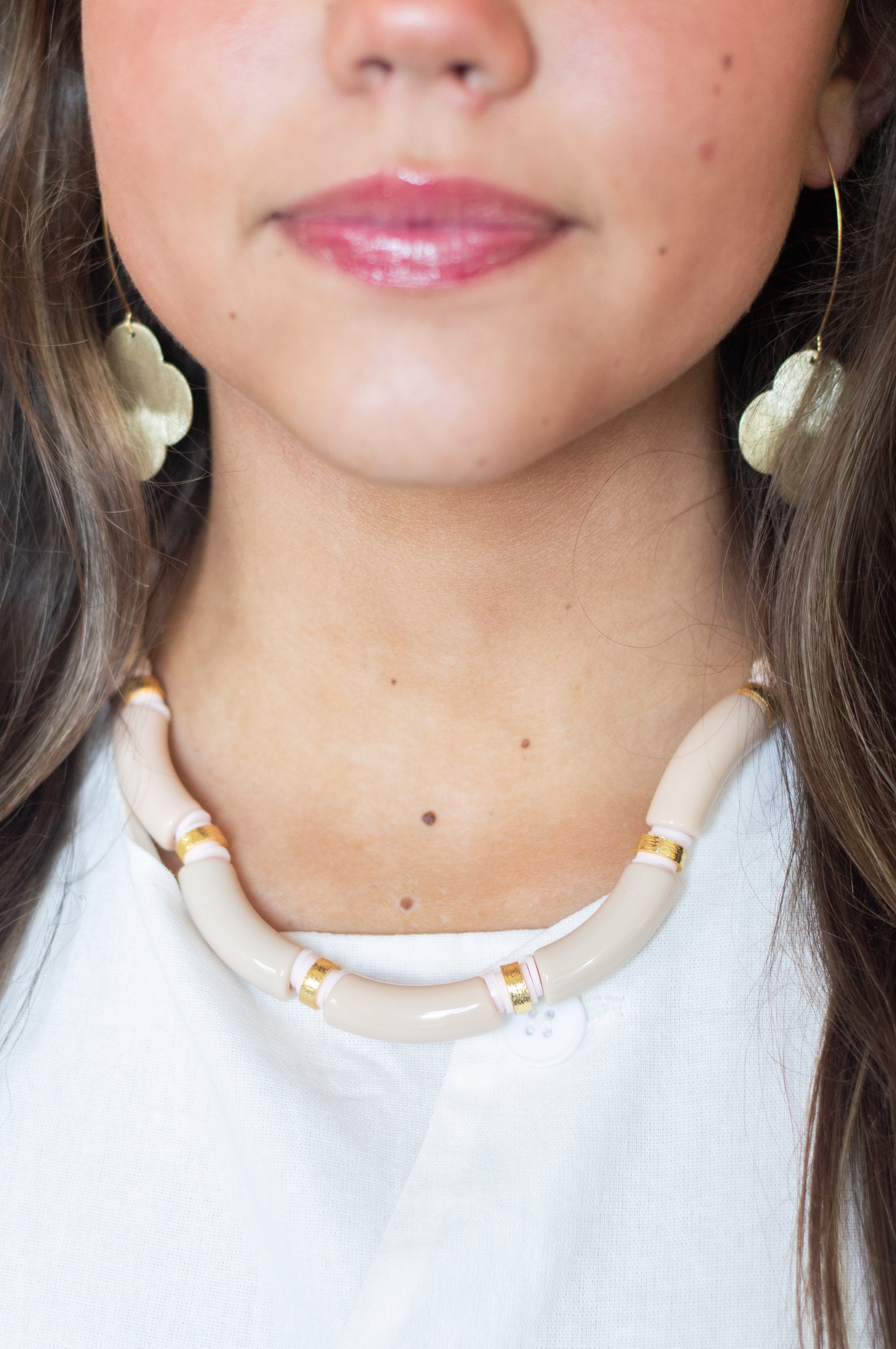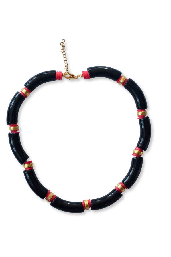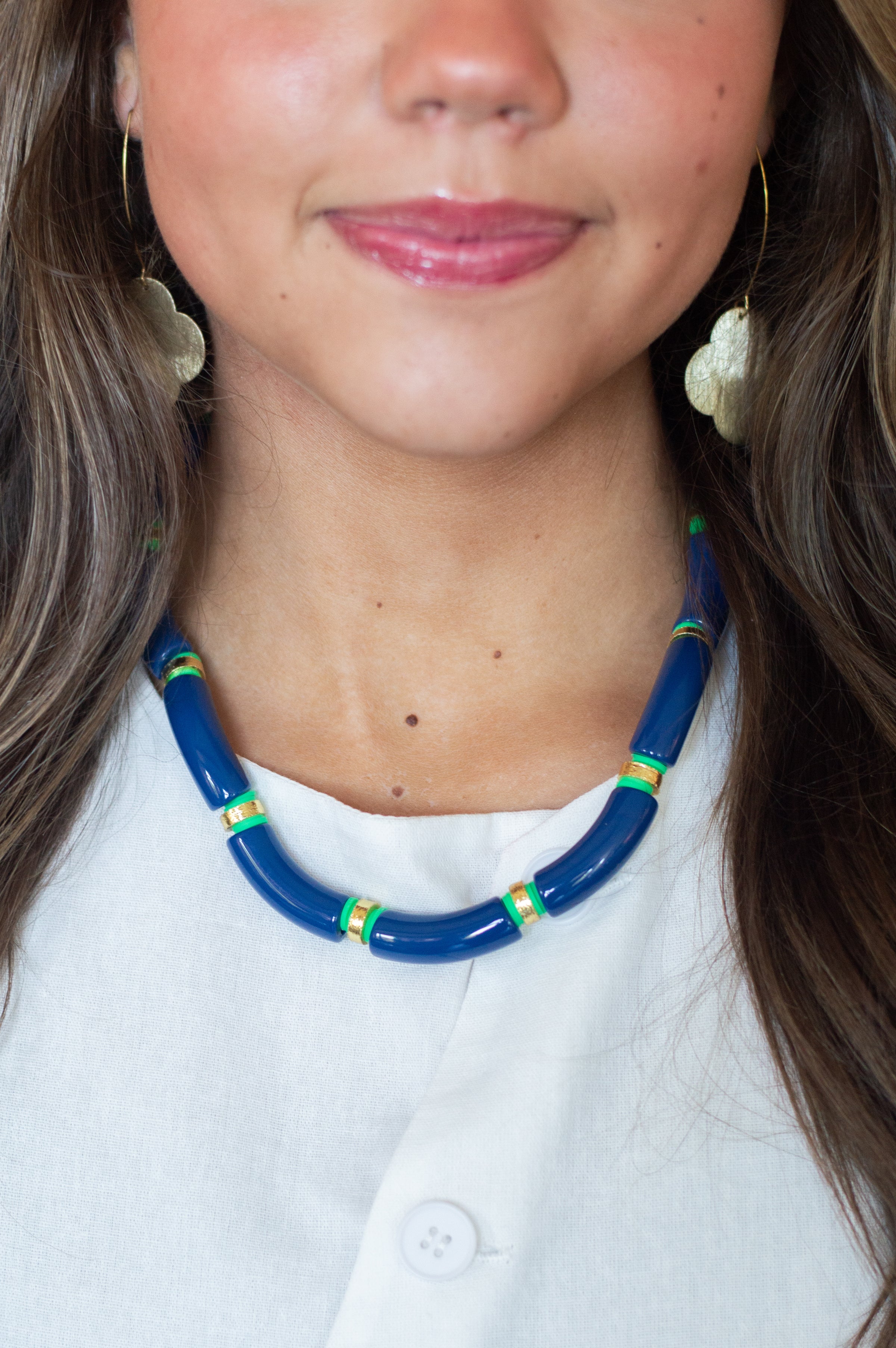 Chunky perfection with a playful edge — This glam necklace brings vibrant acrylic beads to life, accented by colorful clay disc spacers and touches of gold-plated shine. Whether you're repping your team on gameday or turning heads downtown, this standout piece delivers style and spirit. Layer it with our Gold Diana Chain Necklace for an effortlessly elevated look.