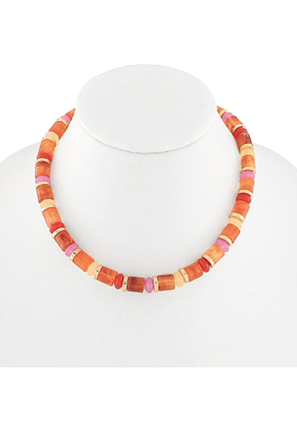 Lulu Cylinder Beaded Necklace- Peach