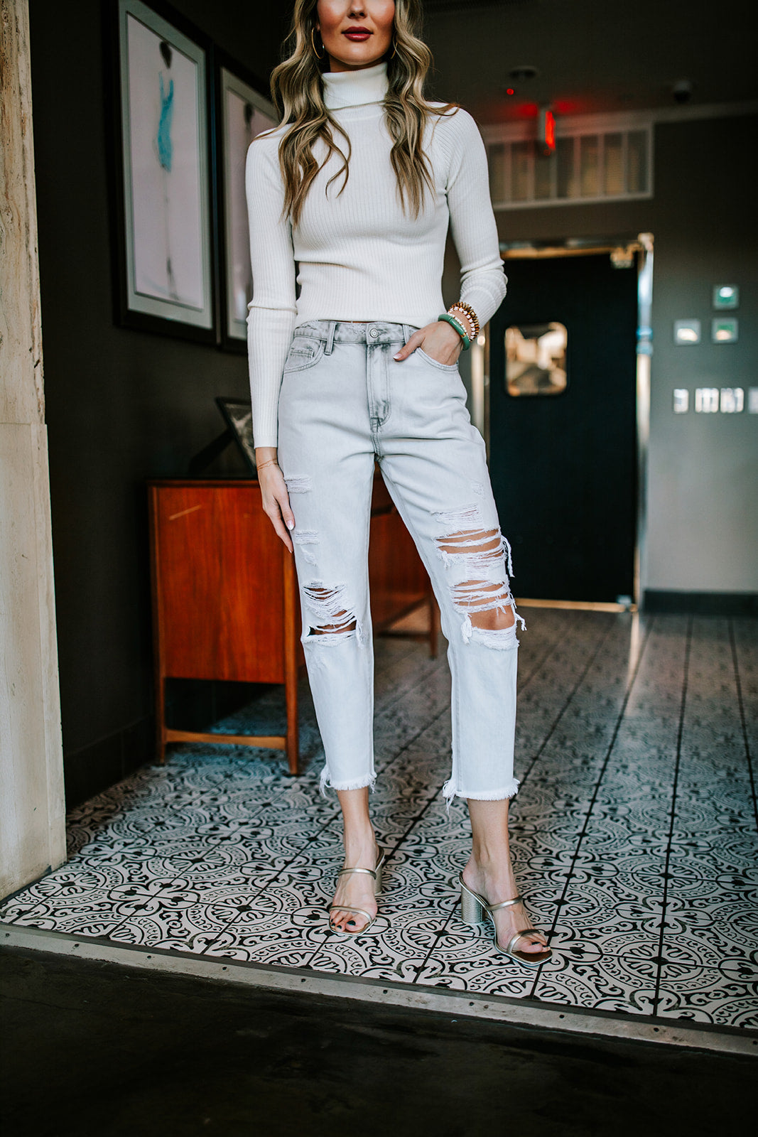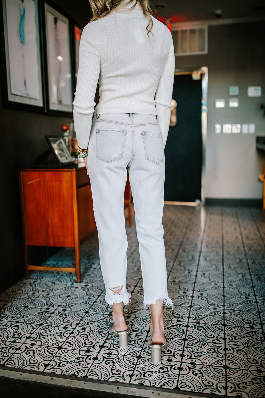 What we love about these jeans... they have a raw hem. So, you can cut them off to the perfect length. Chop away!