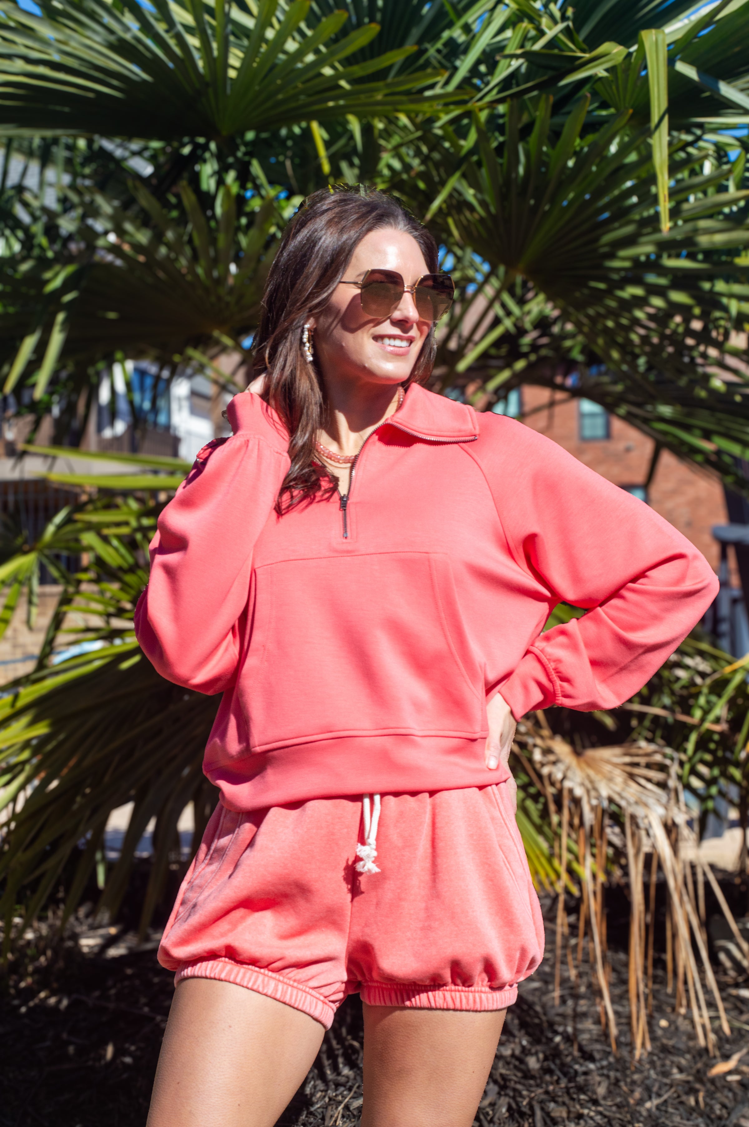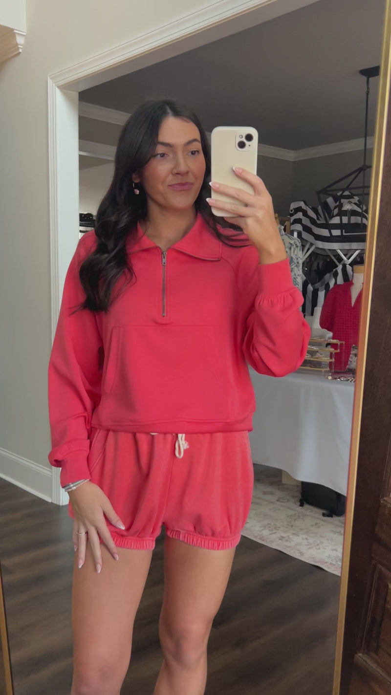 Have fun in the sun wearing these coral BubbleEase Knit Shorts! The playful bubble detail adds a fun touch, and the drawstring waist gives you the perfect fit. Whether you're lounging, running errands, or heading to the beach, these shorts keep you cool and comfy all day. Pair them with our Highline Zip Sweatshirt for the ultimate laid-back, chic vibe!