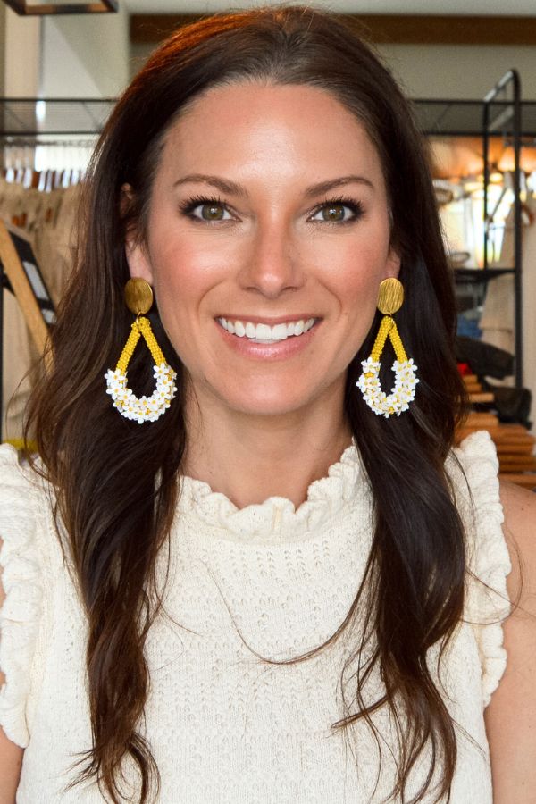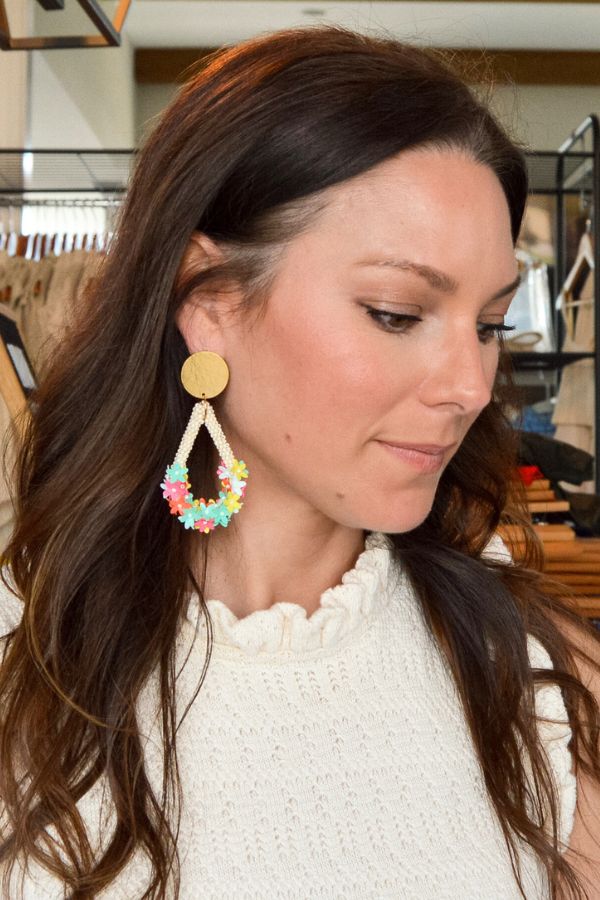 Expertly crafted with beaded detailing, these teardrop-shaped earrings feature our signature gold plated circle studs. Nickel and lead-free, these dainty earrings showcase colorful daisies for a cheerful touch. Elevate any outfit with these elegant and hypoallergenic earrings.