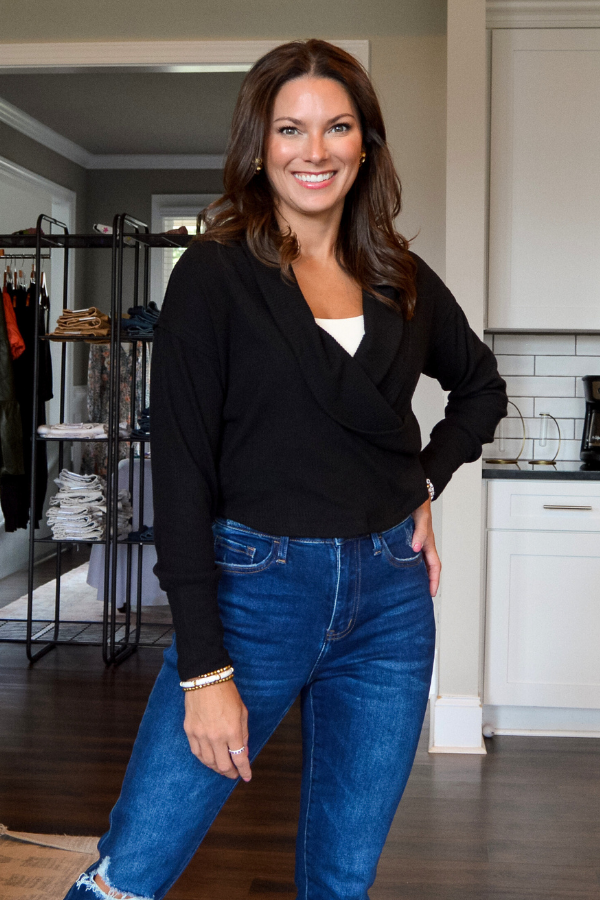 Introducing the Midnight Pirouette Wrap Top, the perfect addition to any workout wardrobe. This ballet chic ribbed top in classic black is perfect for layering, allowing for versatile style options. Whether you're heading to the studio or out for errands, simply throw this on over any tank or bra top. Stay chic and comfortable with our wrap top!