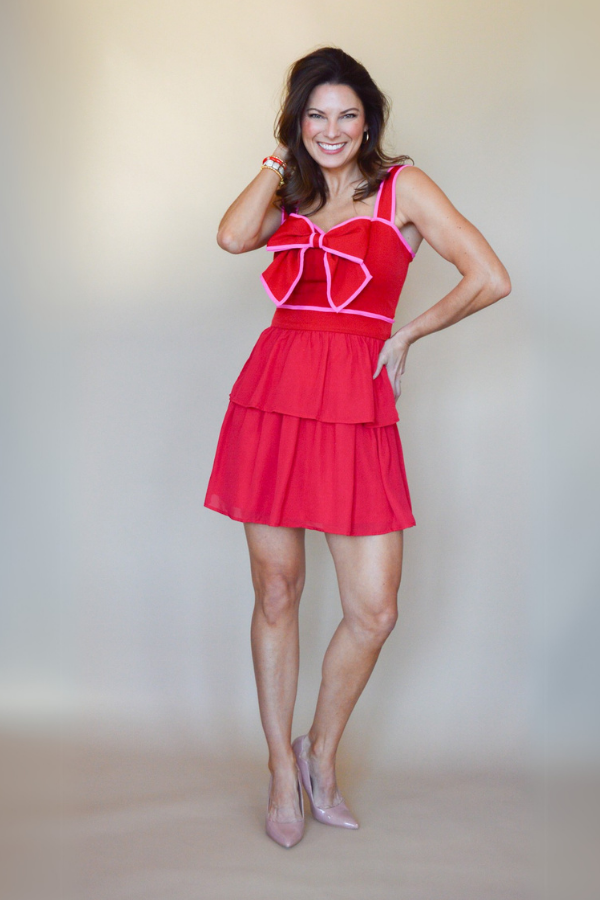 This adorable fit-and-flare dress is the perfect blend of playful and feminine. Featuring a charming bow tie at the neckline, it adds a sweet and sophisticated touch to the design. The ruffled tiered skirt gives the dress a lively, flowing movement that’s both flattering and fun. Fully lined for comfort, it ensures a smooth fit, while the back hidden zipper provides a seamless finish. Whether you’re dressing up for a brunch date, an afternoon event, or a special occasion, this dress will have you feeling effortlessly chic and confident.