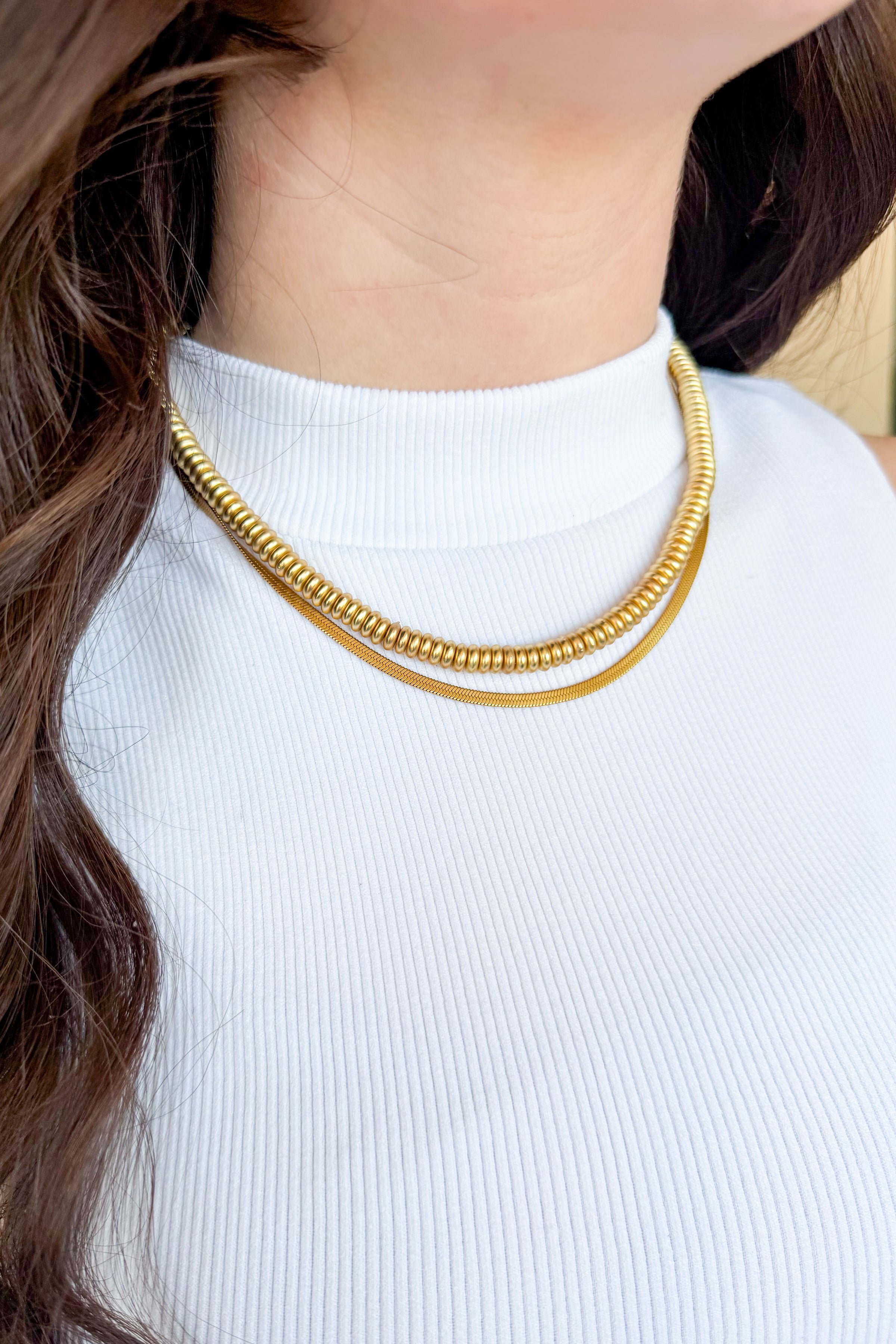 This necklace measures 16" in length with a 2" extender and is finished in 18K real matte gold plating. Lightweight, easy to layer, and made to shine (without trying too hard), it’s the kind of piece you’ll reach for every day. It hits perfectly at the collarbone and is made for layering—pretty on its own, even better stacked with your favorites.