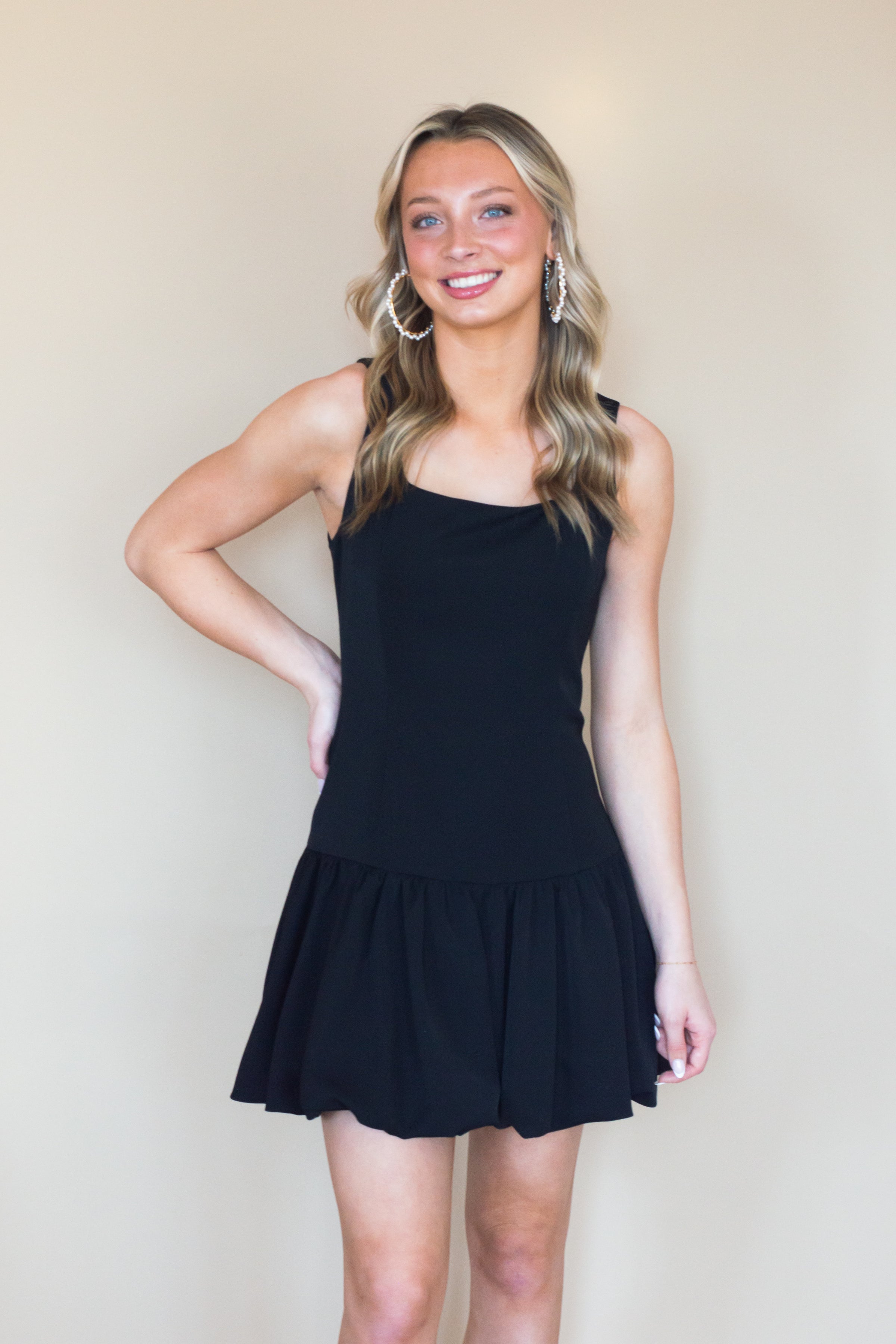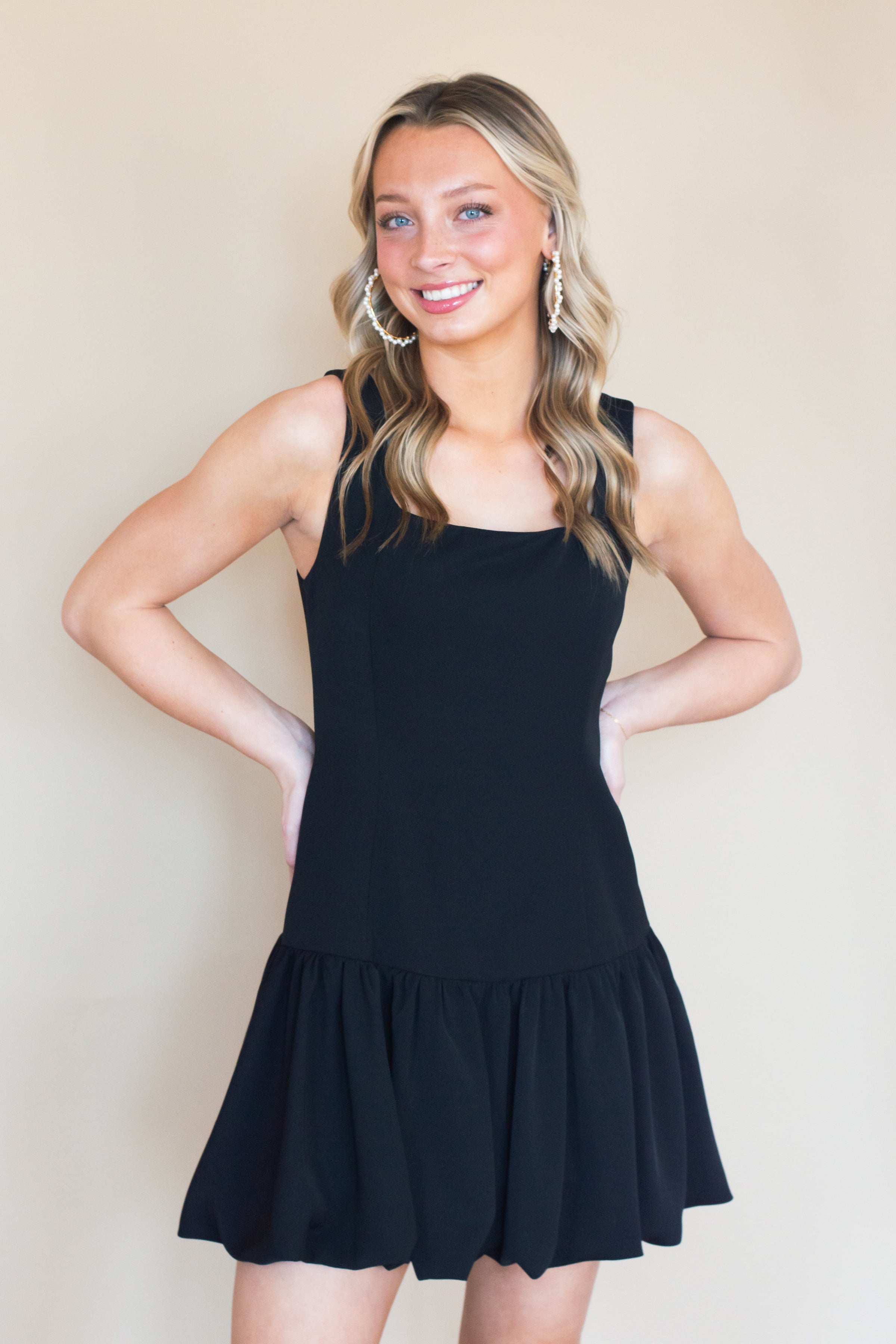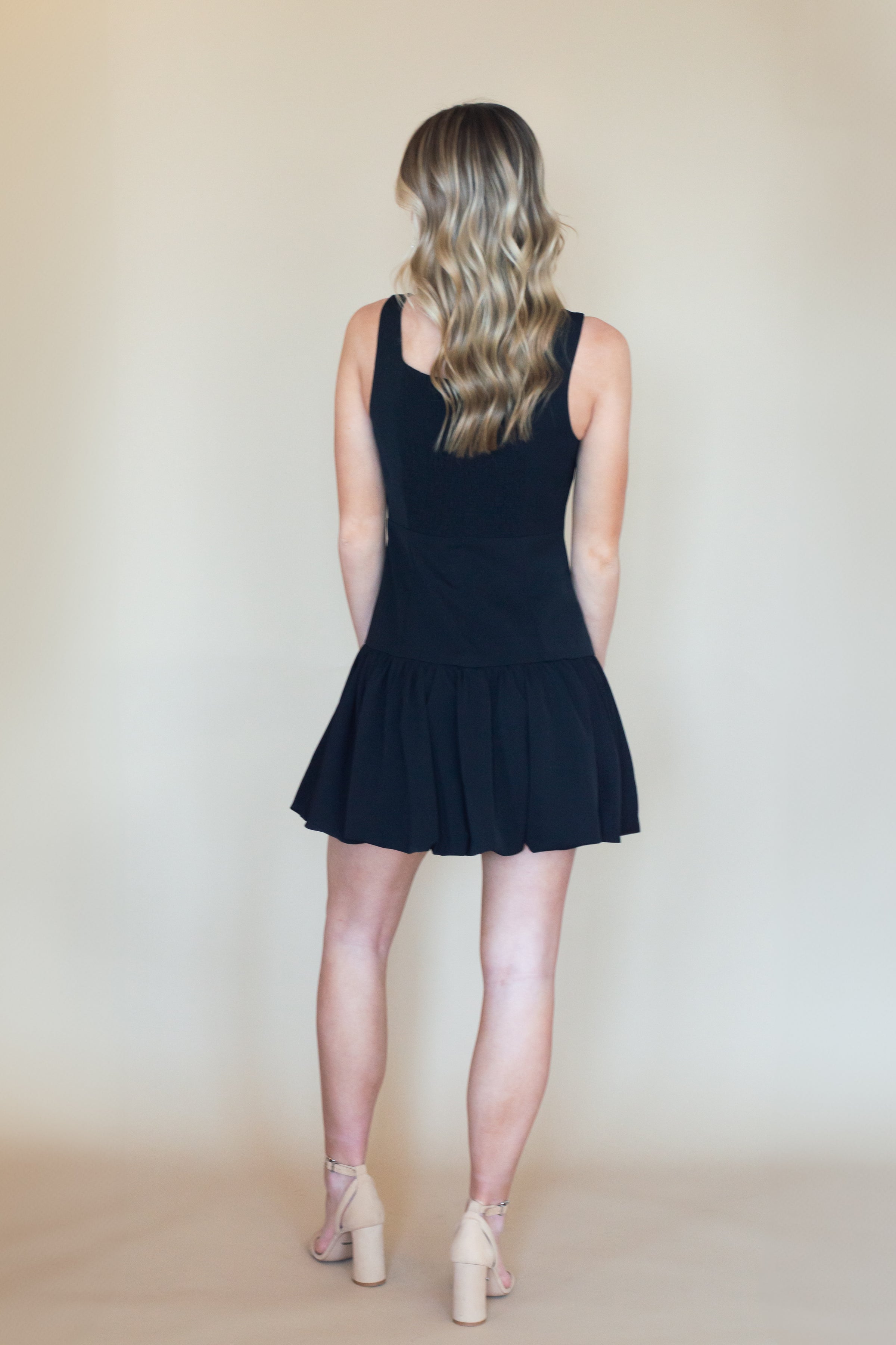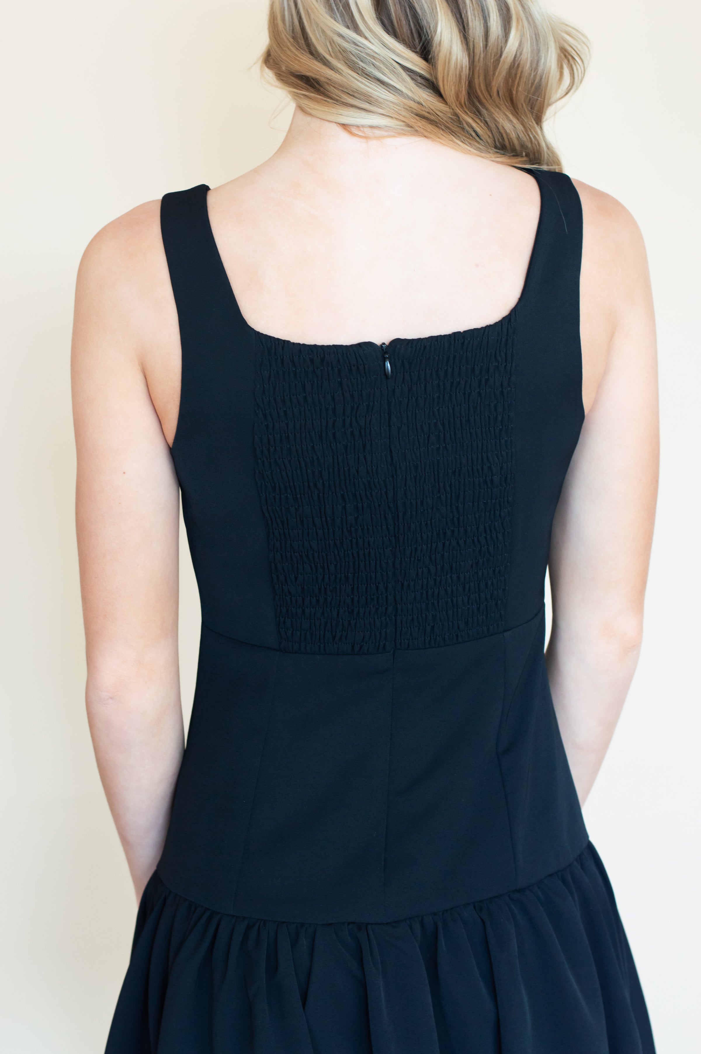 Elevate your wardrobe with this sophisticated square neck fitted dress, designed to flatter and flow effortlessly. Featuring a unique bubble hem, this dress combines modern style with timeless elegance. Fully lined for comfort and quality, it includes smocked detailing in the back for a flattering, stretchable fit. The concealed back zipper adds a seamless finish, ensuring you look polished from every angle. Perfect for both casual outings and special occasions, this dress will become a versatile addition to your collection.
