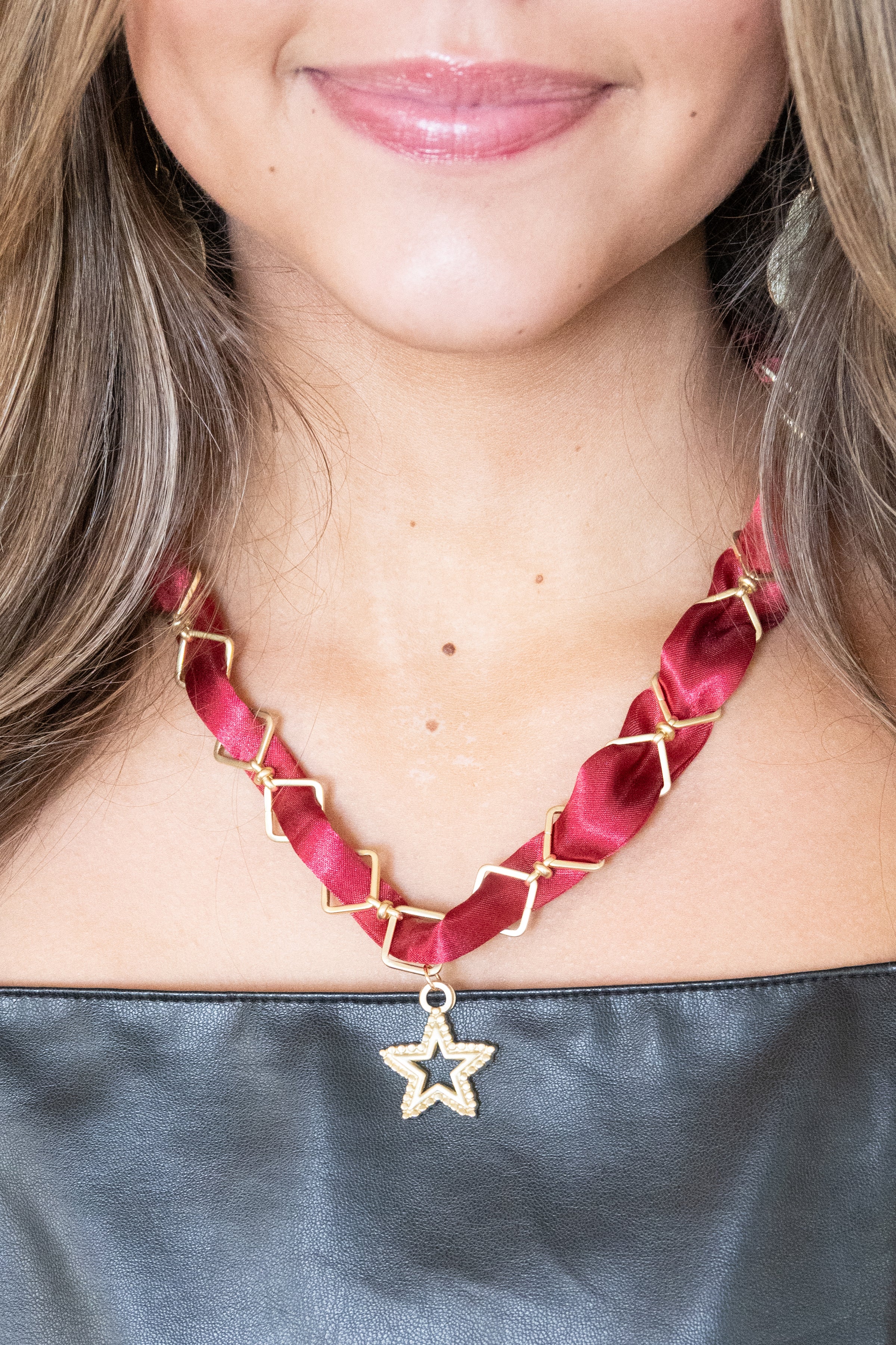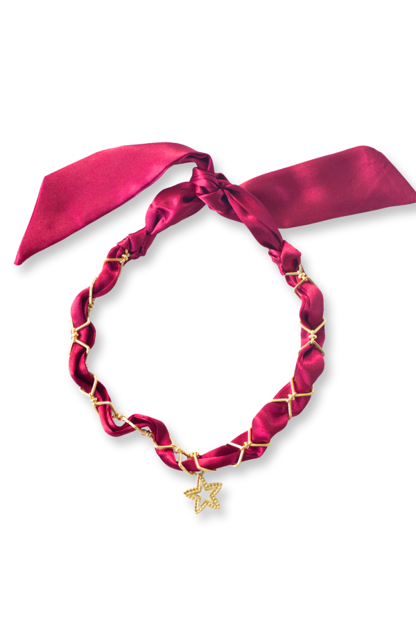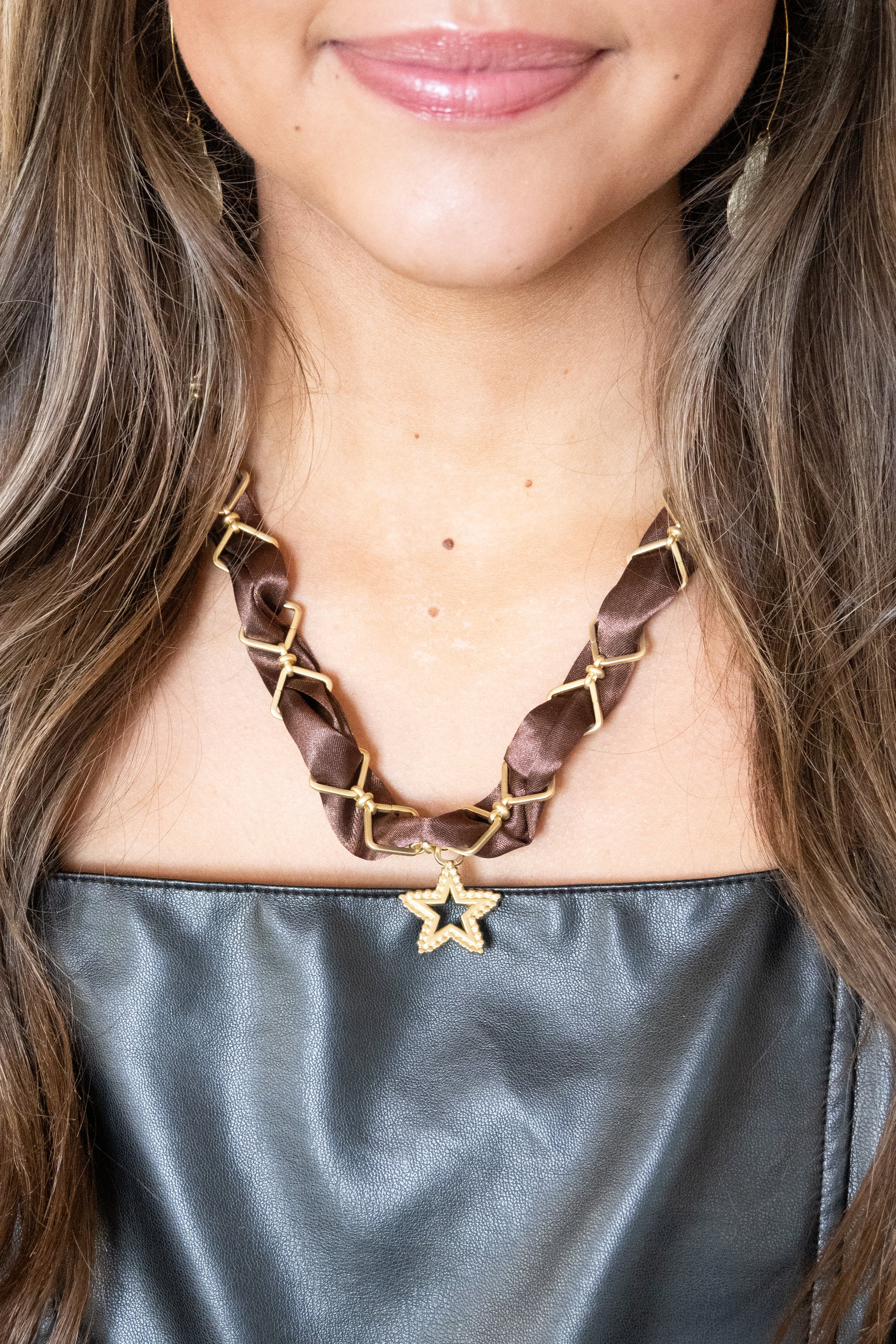 The Macy Necklace blends soft and bold in the most effortless way. A silky satin scarf is woven through a matte gold chain, finished with a charming gold star for just the right amount of shine and statement. Equal parts trendy and timeless, it’s the perfect statement piece for everyday wear or adding a festive touch to your holiday look.