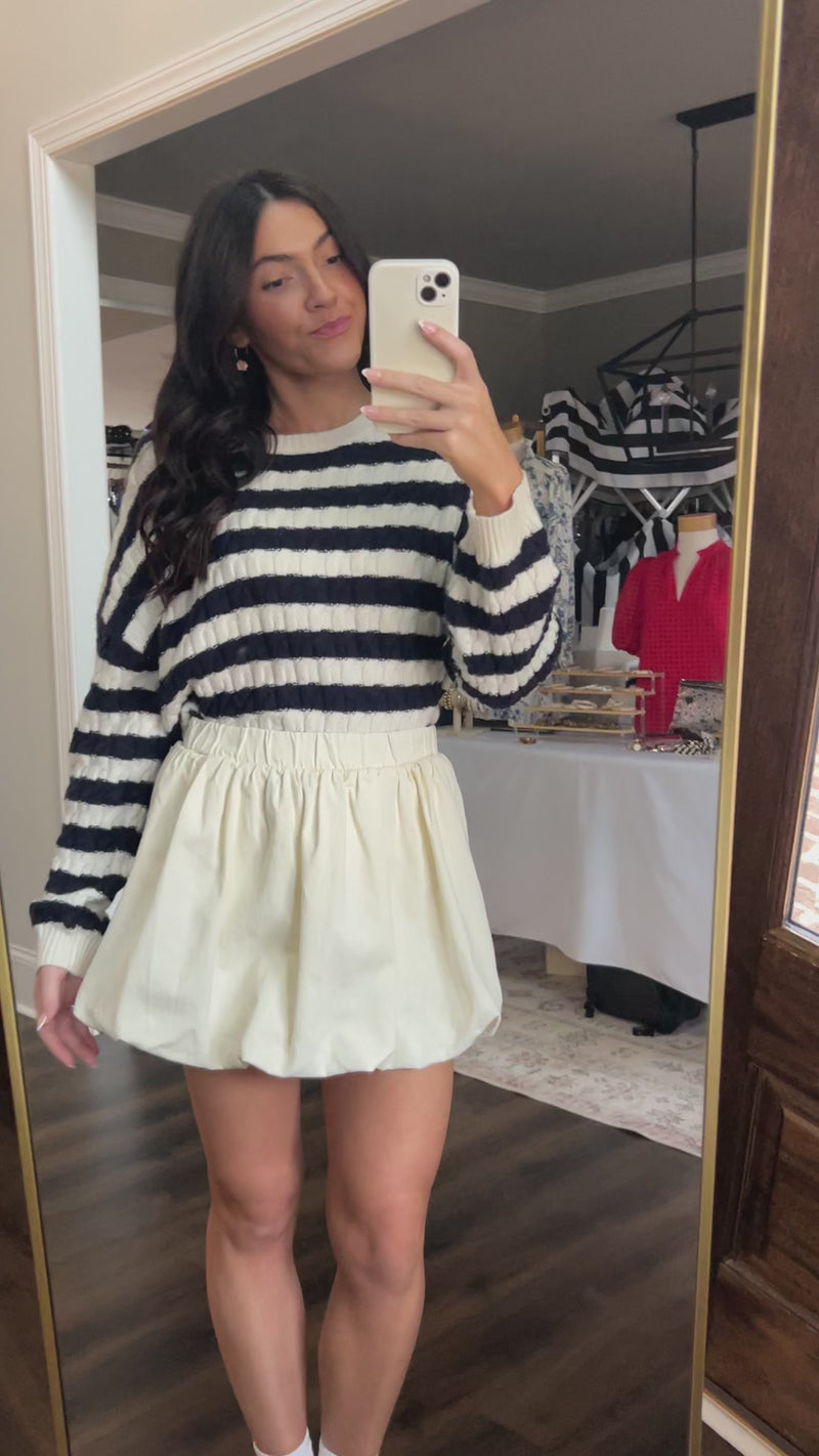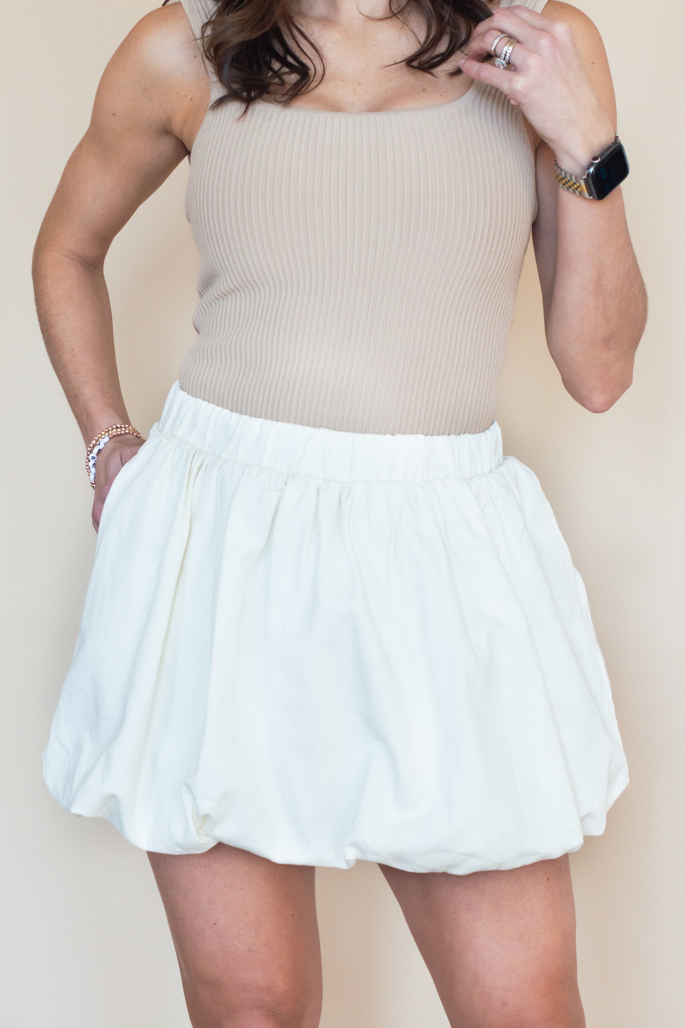 This beautiful cream mini bubble skirt is comfy and effortless! Made from 100% cotton with a flattering bubble silhouette (and pockets!), it’s perfect for dressing up or keeping it casual. Trust us, you’ll be wearing this one on repeat!