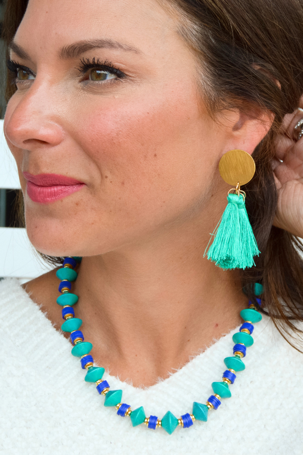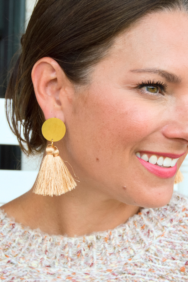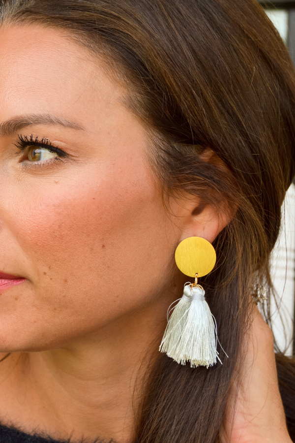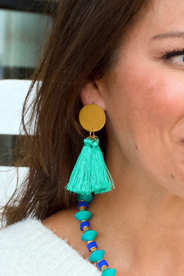Add a playful touch to any outfit with our Kenleigh Earrings! Featuring our signature gold plated studs and three delicate silk tassels, these lightweight earrings are the perfect statement piece. (Triple the tassels, triple the fun!)